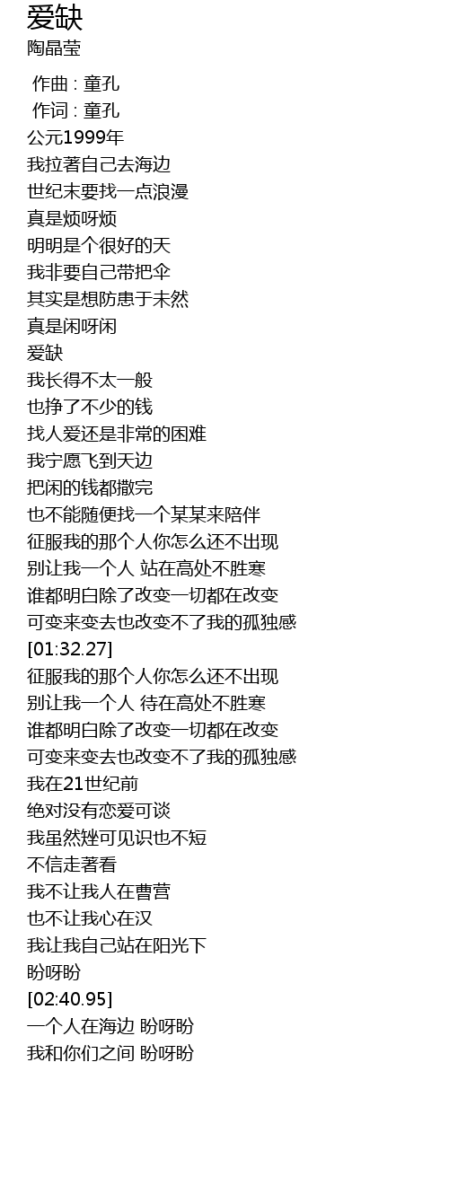 | [00:21.97] | 世纪末要找一点浪漫 |