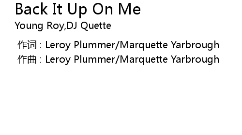 | [00:00.000] | 作词 : Leroy Plummer/Marquette Yarbrough |