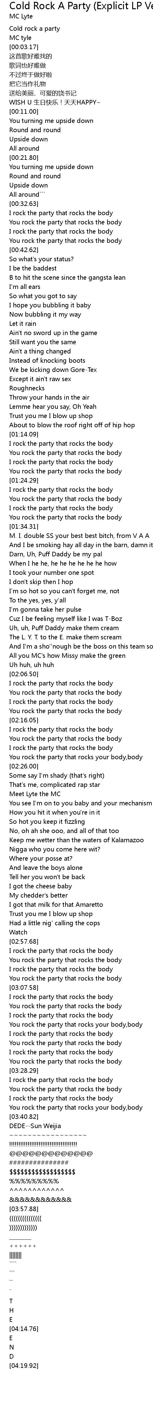 | Song | Cold Rock A Party (Explicit LP Version) |
