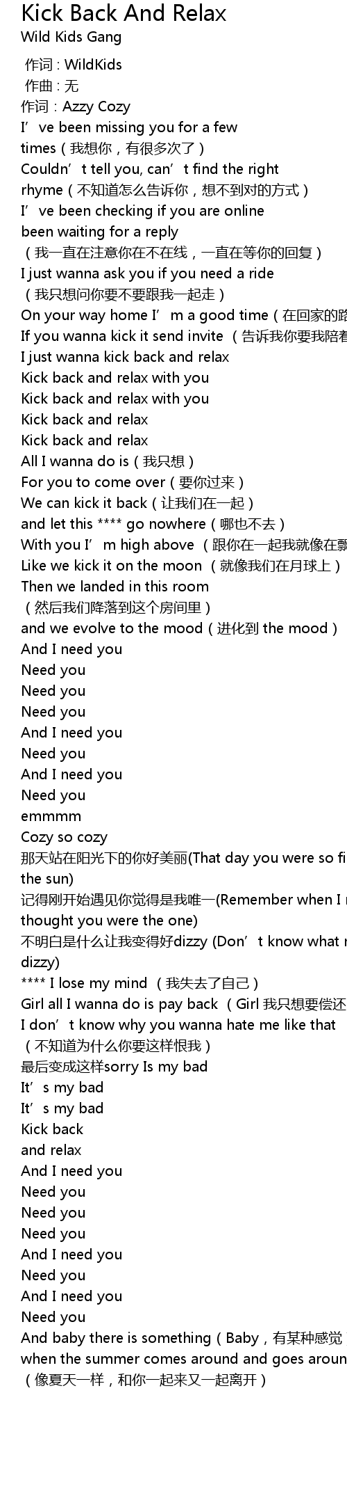 | [01:27.684] | We can kick it back ràng wǒ men zài yì qǐ |