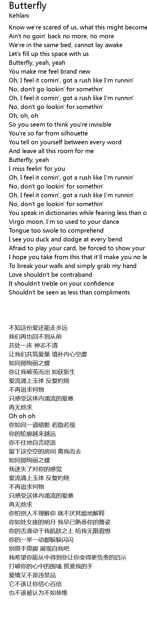 | [00:31.02] | Butterfly, yeah, yeah |