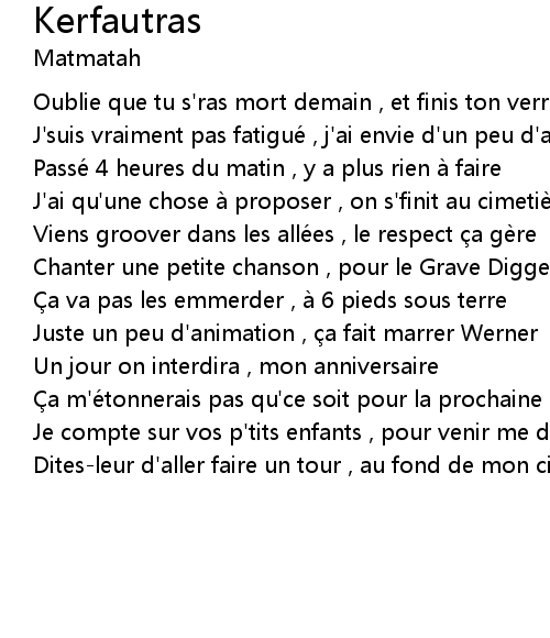 | Ditesleur d' aller faire un tour , au fond de mon cimetiè re |