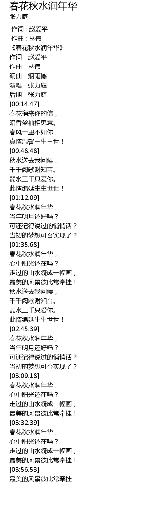 | [00:04.10] | chun hua qiu shui run nian hua |