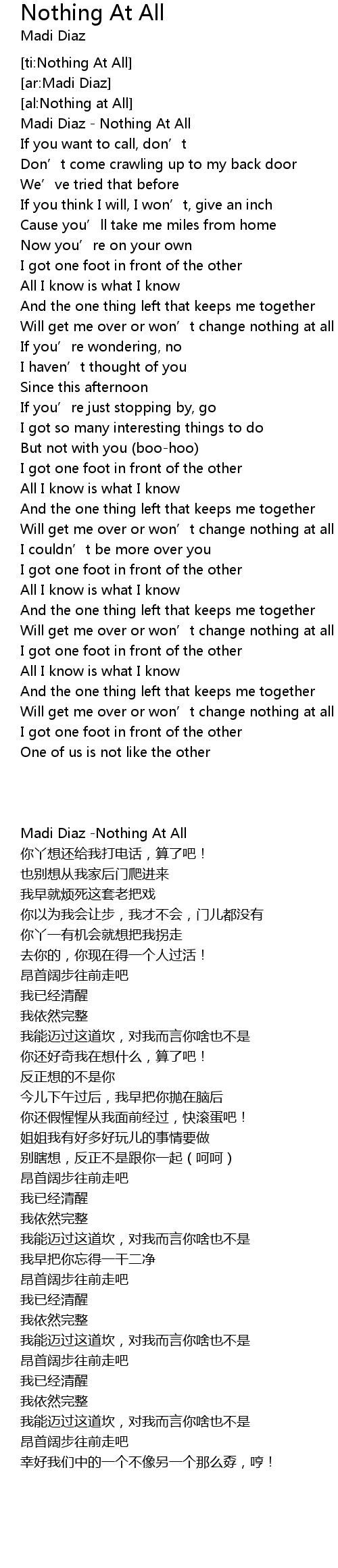 | [00:00.00] | Madi Diaz - Nothing At All |