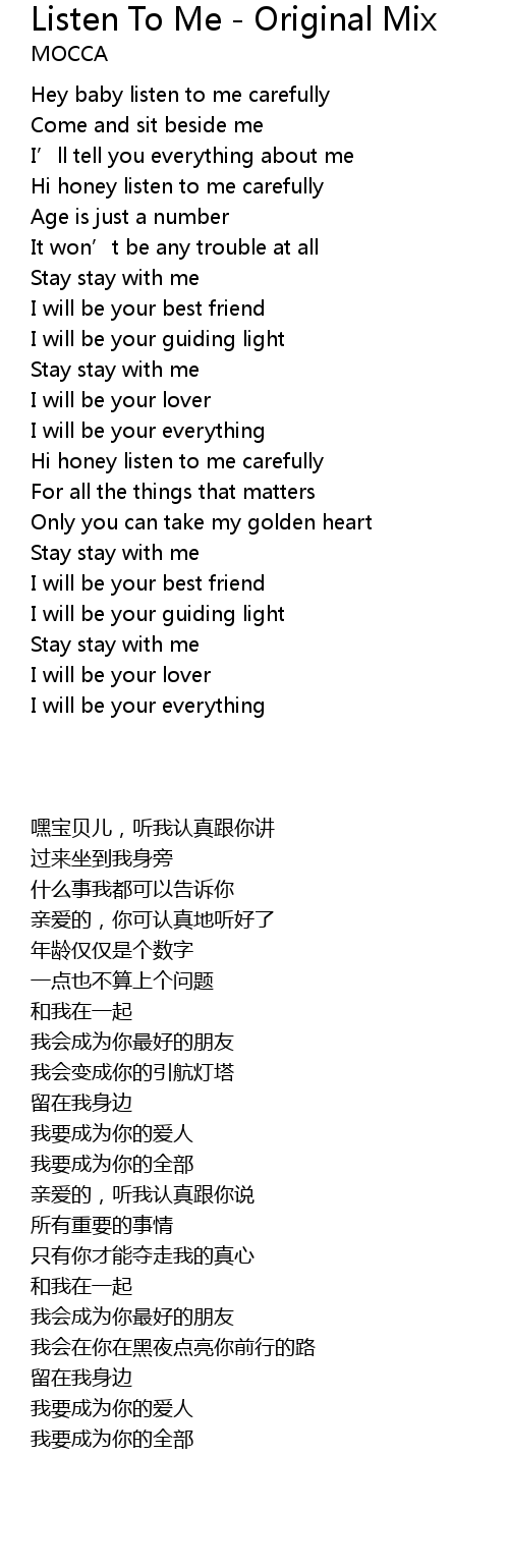 | [00:18.82] | Hey baby listen to me carefully |