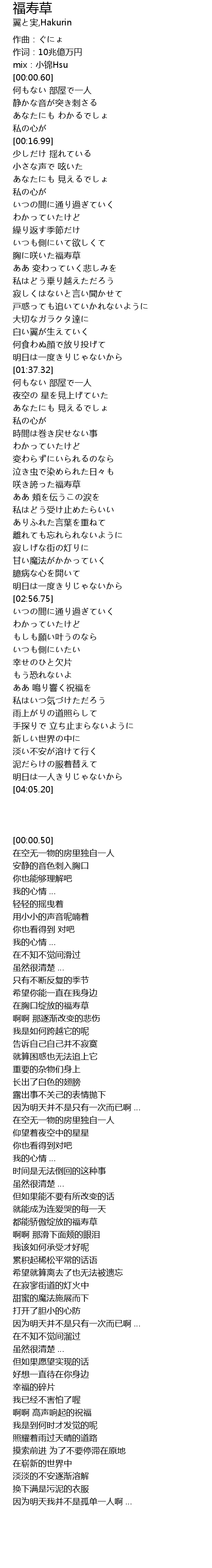 | [00:00.50] | mix:小锦Hsu |