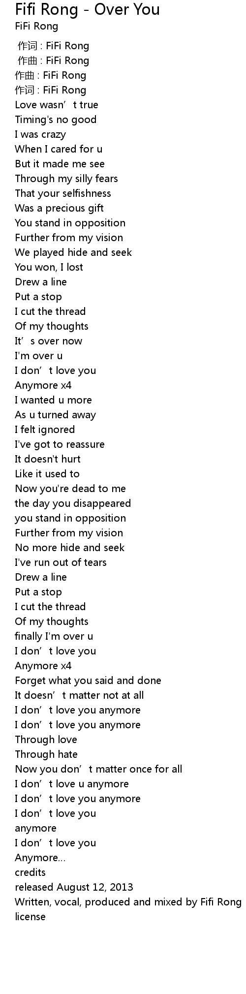 | [03:26.63] | Written, vocal, produced and mixed by Fifi Rong |