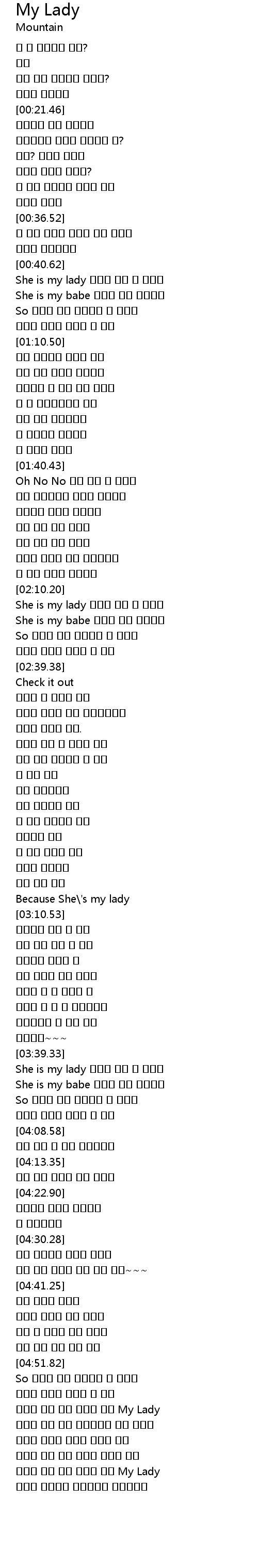 | [00:41.38] | She is my lady 그녀는 나를 더 좋아해 |