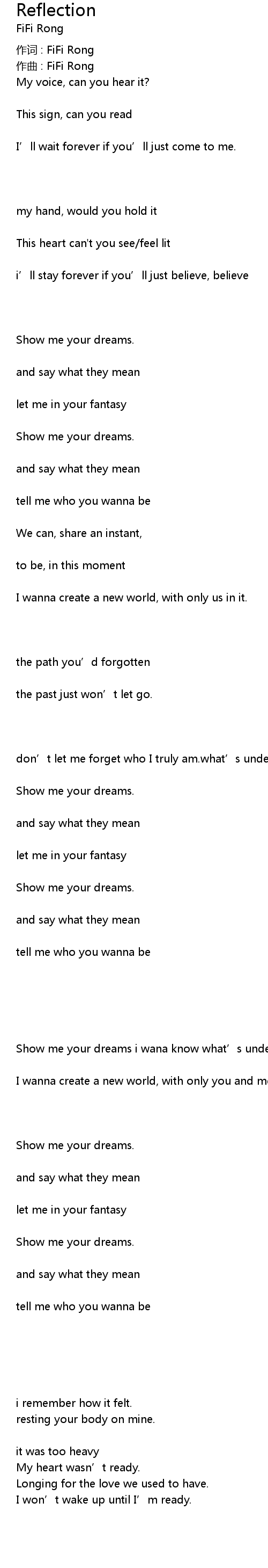 | 作词 : FiFi Rong | |