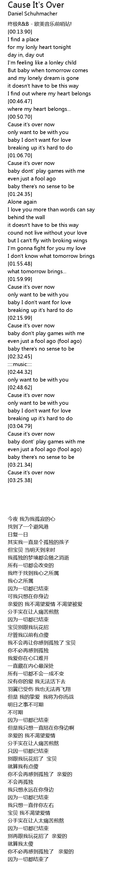 | [02:16.99] | Cause it's over now |