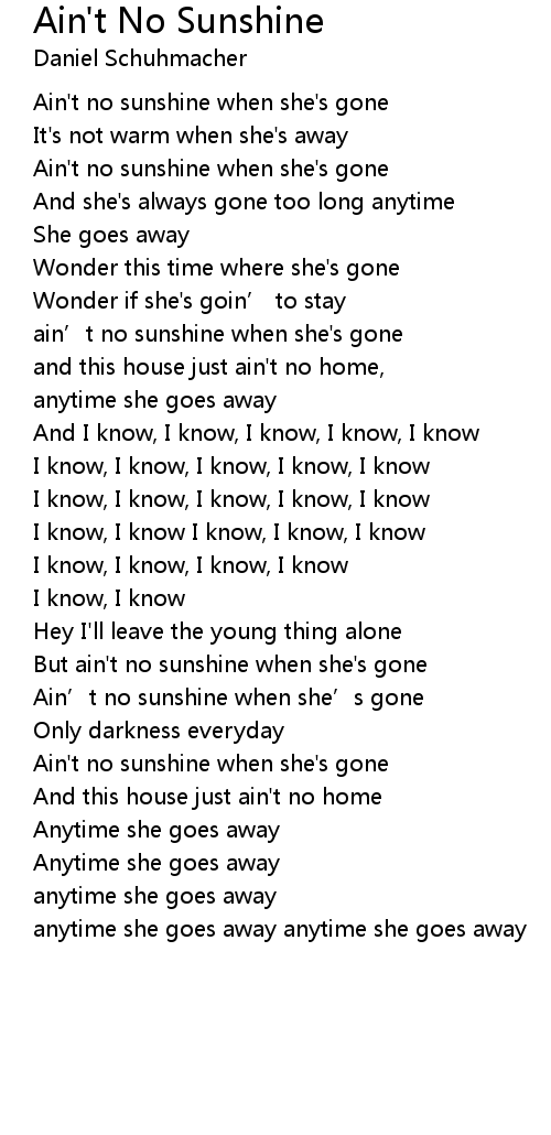 | Ain' t no sunshine when she' s gone | |