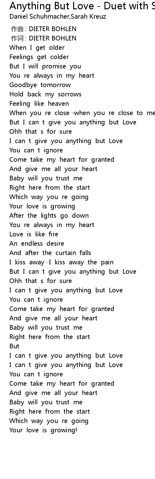 | [00:01.00] | 作词 : DIETER BOHLEN |