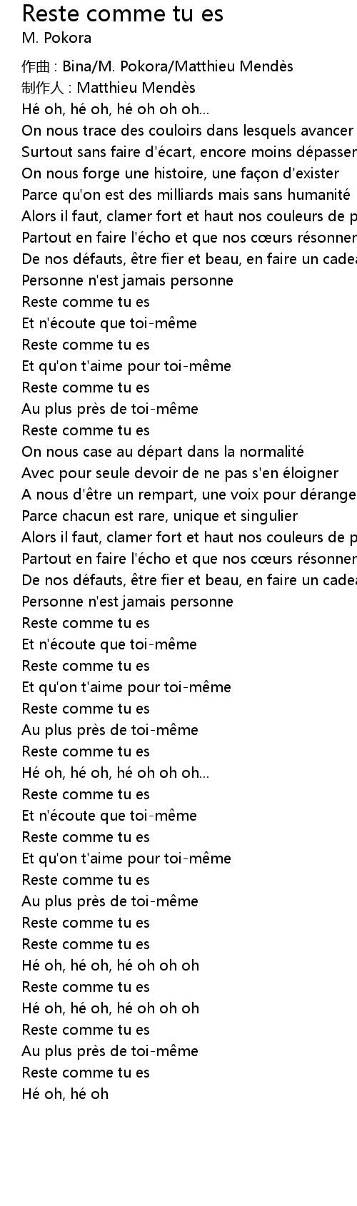 | zuò qǔ : Bina M. Pokora Matthieu Mendè s | |