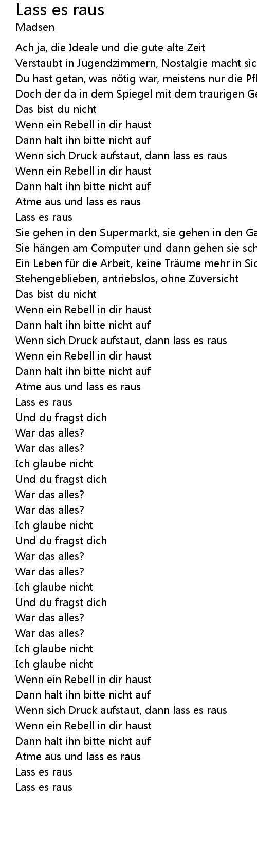 | Song | Lass es raus |