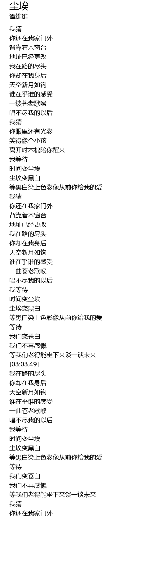 | [03:41.24] | 等黑白染上色彩像从前你给我的爱 |