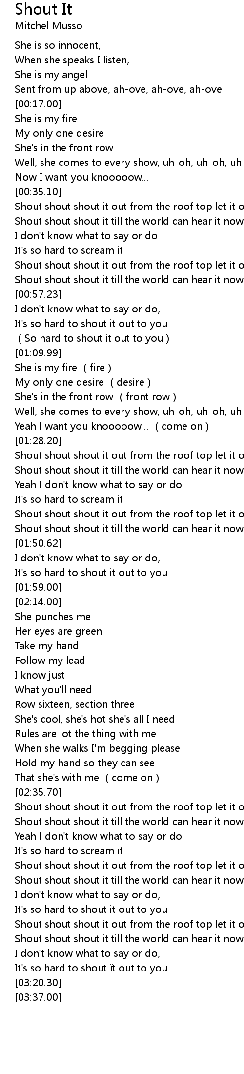 | [02:36.65] | Shout shout shout it out from the roof top let it out |