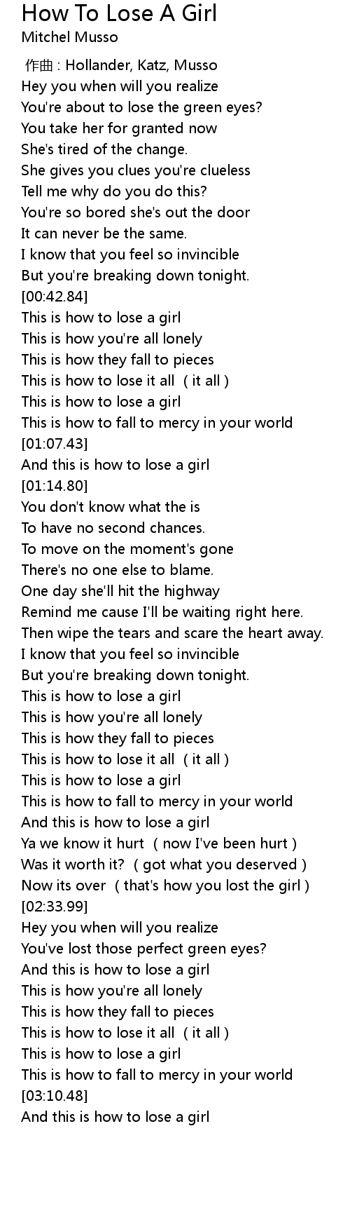 | [02:29.49] | Now its over that' s how you lost the girl |