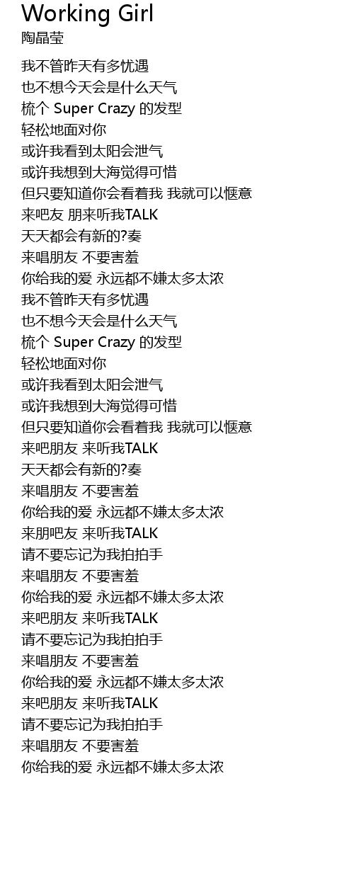 | [01:46.23] | 梳个 Super Crazy 的发型 |