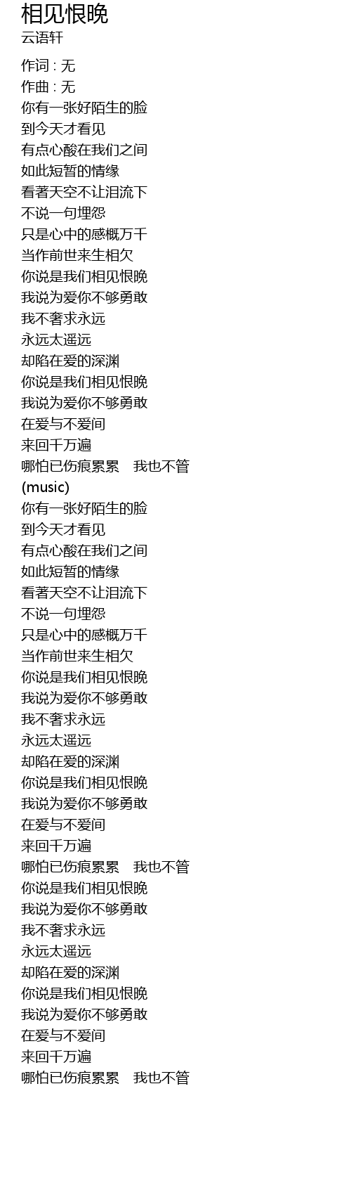 | [02:49] | nǐ shuō shì wǒ men xiāng jiàn hèn wǎn |