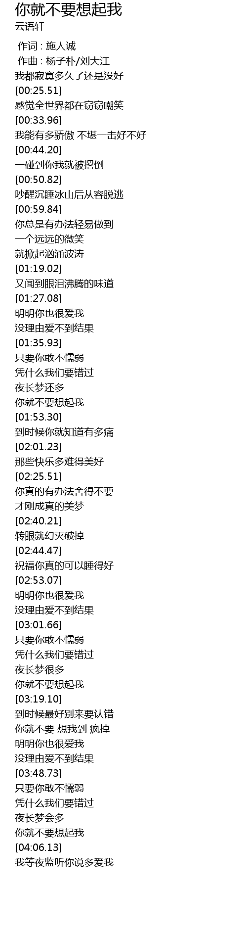 | [03:15.08] | nǐ jiù bú yào xiǎng qǐ wǒ |