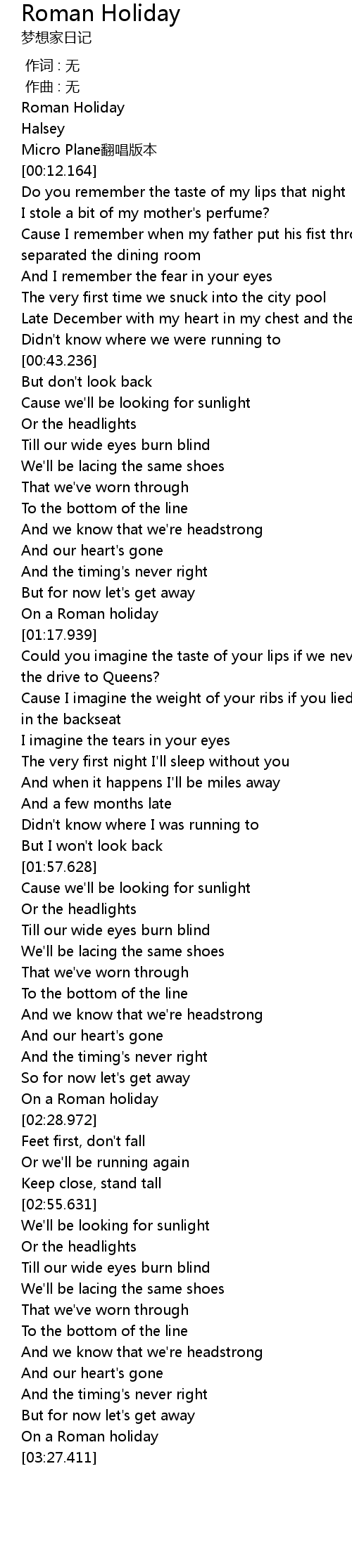 | [00:03.907] | Roman Holiday |