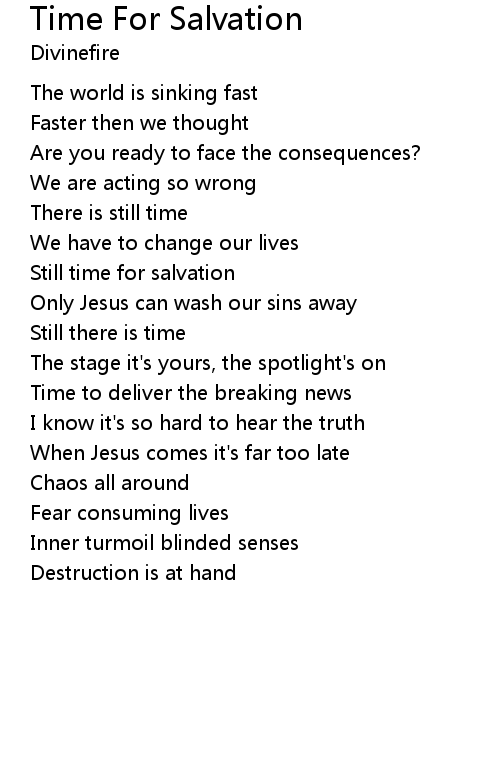 | Song | Time For Salvation |