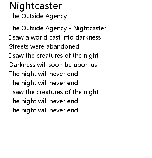 | [00:05.000] | The Outside Agency - Nightcaster |