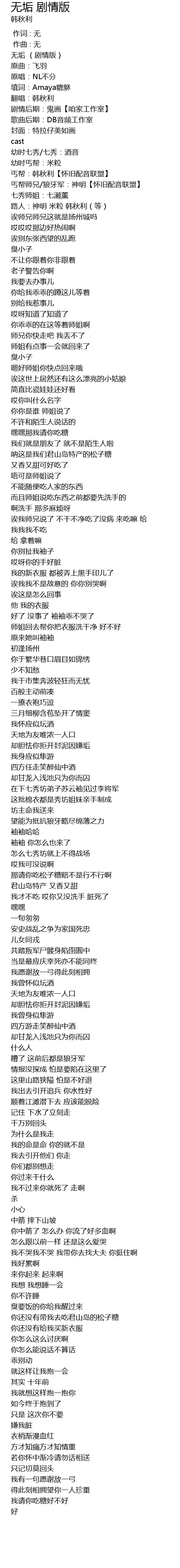 | [00:01.957] | 无垢 (剧情版) |