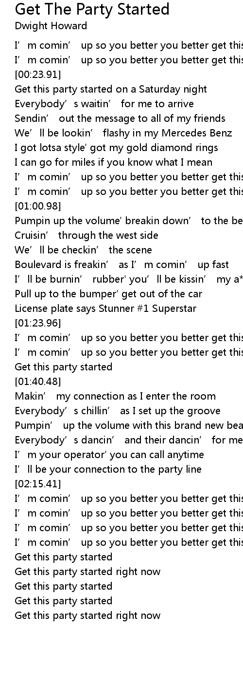 | [02:48.76] | Get this party started right now |