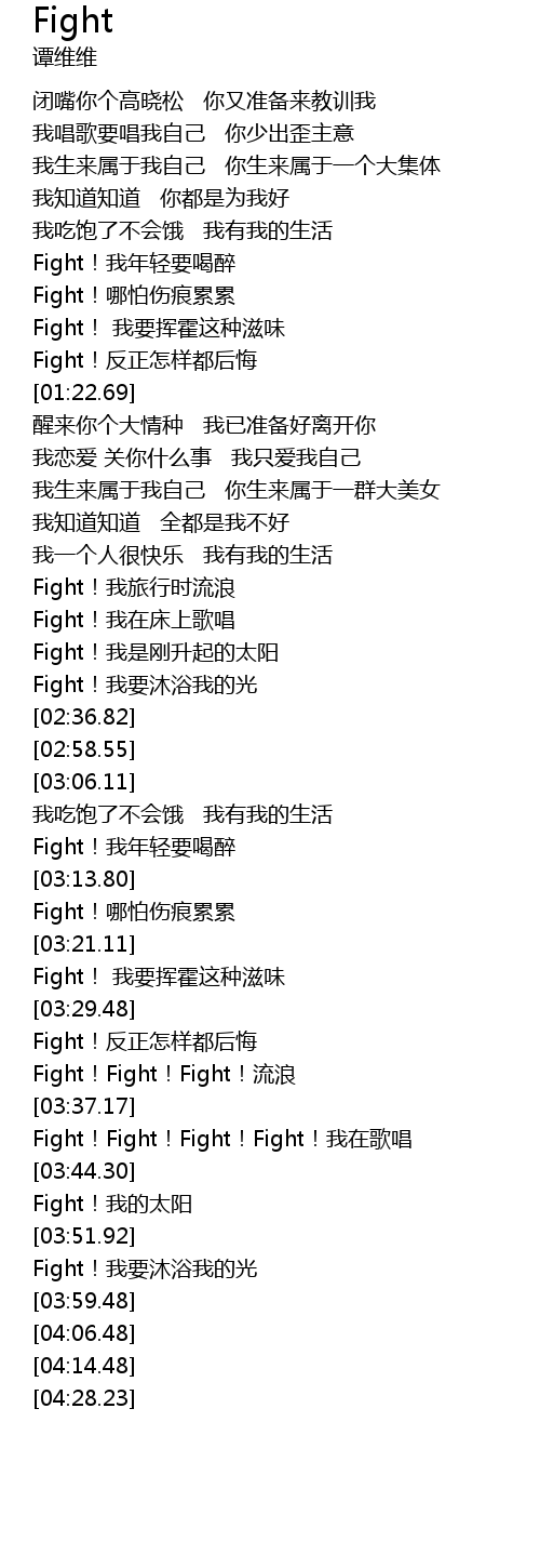 | [03:42.69] | Fight!Fight!Fight!Fight!我在歌唱 |
