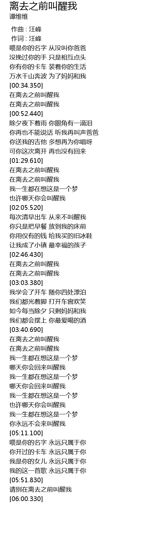 | [03:41.800] | zài lí qù zhī qián jiào xǐng wǒ |