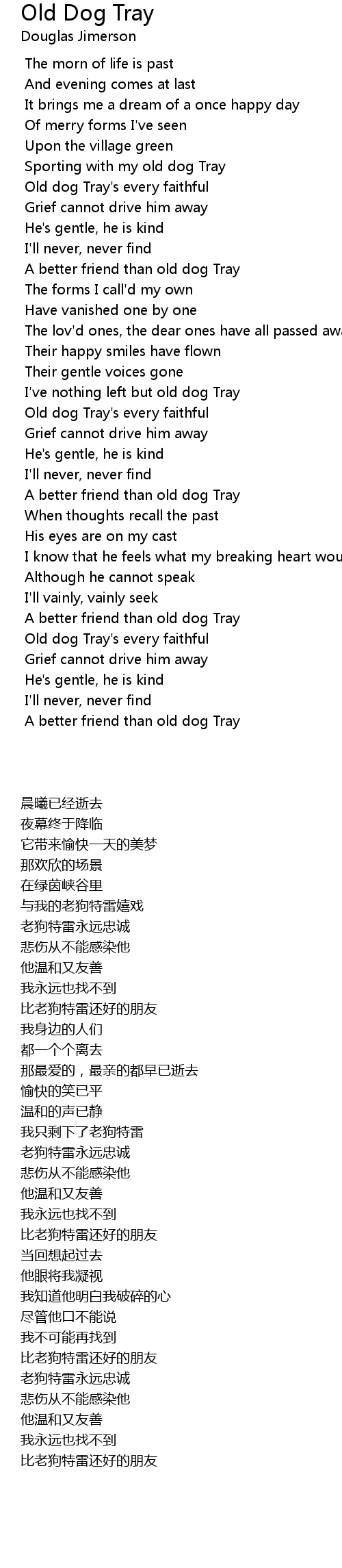 Song Old Dog Tray