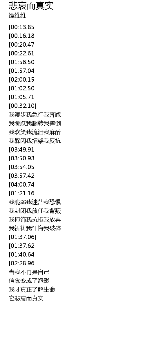 | [02:13.27][01:05.71] | 它悲哀而真实 |