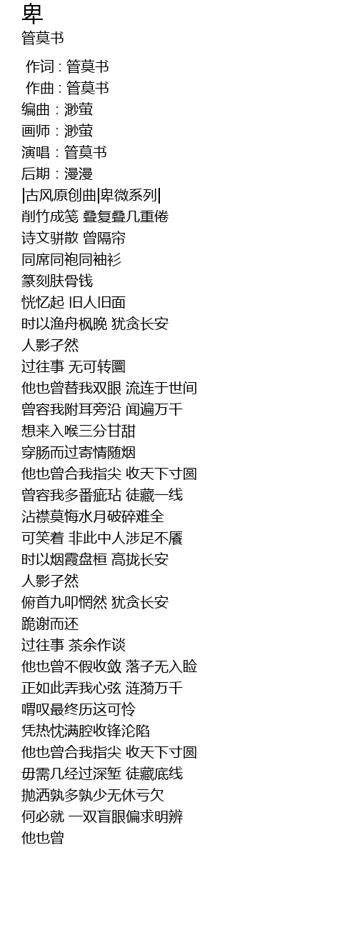 | [00:01.000] | zuò qǔ : guǎn mò shū |