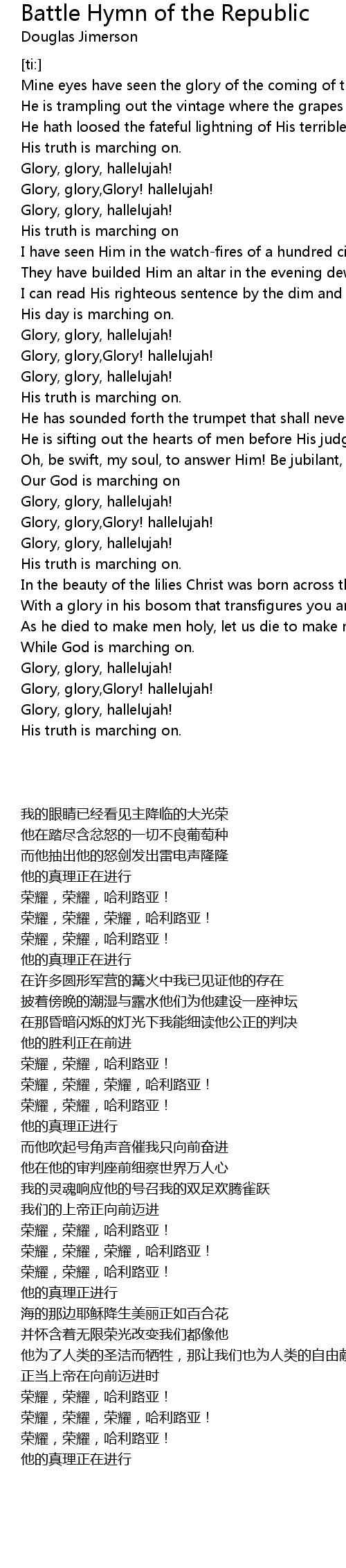 He hath loosed the fateful lightning of His terrible swift sword: |