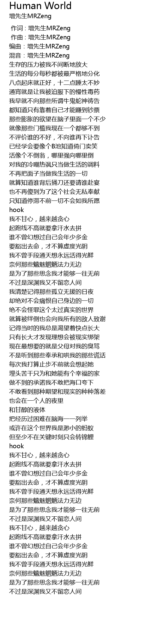 | [00:00.000] | 作词 : 增先生MRZeng |