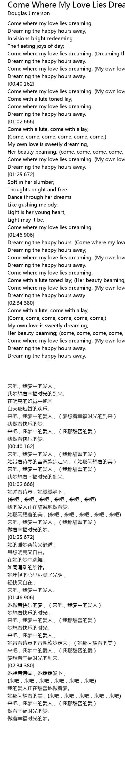 Dreaming the happy hours, (Come where my love lies dreaming,) |