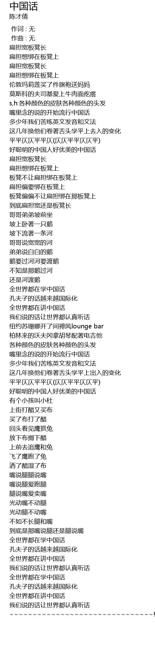 | [00:19.391] | 嘴里念的说的开始流行中国话 |