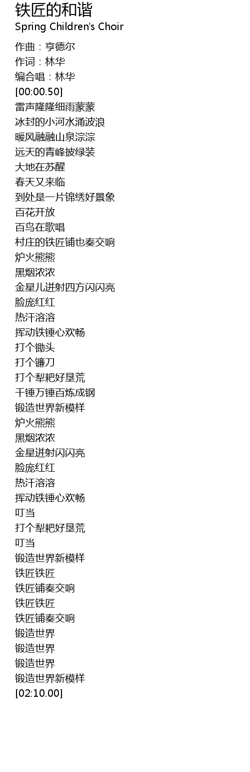 | [00:28.39] | 村庄的铁匠铺也奏交响 |