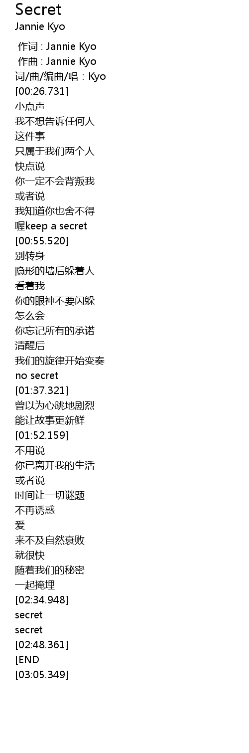 | [00:00.000] | 作词 : Jannie Kyo |