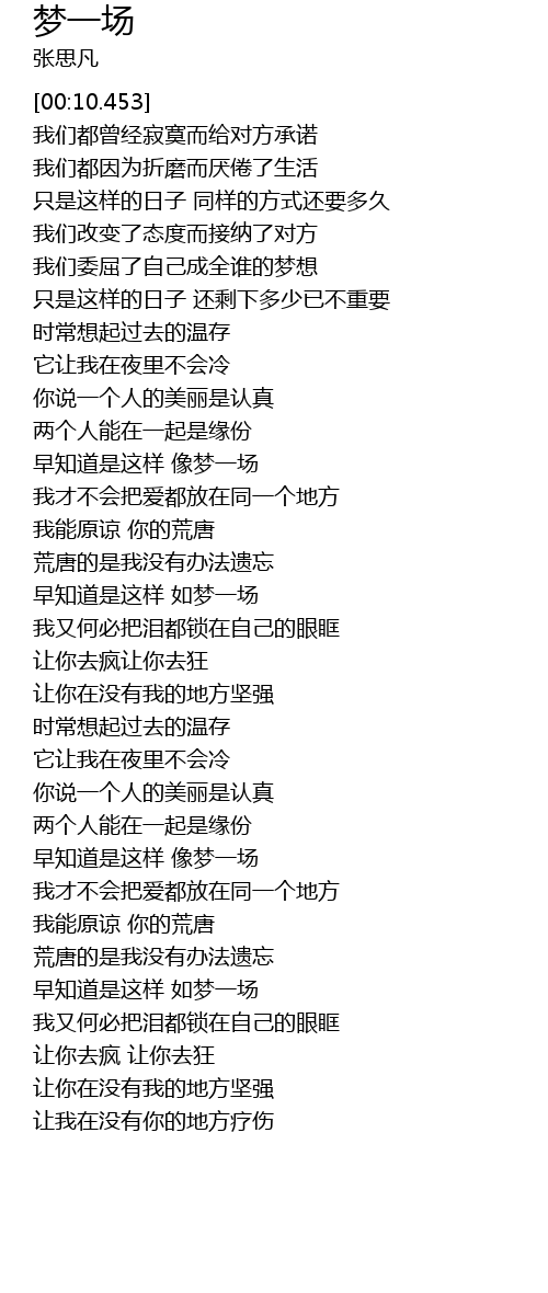 | [01:38.565] | 早知道是这样 如梦一场 |