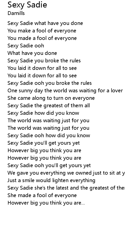 Sexy Sadie what have you done |