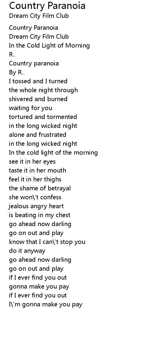 Country Paranoia Lyrics