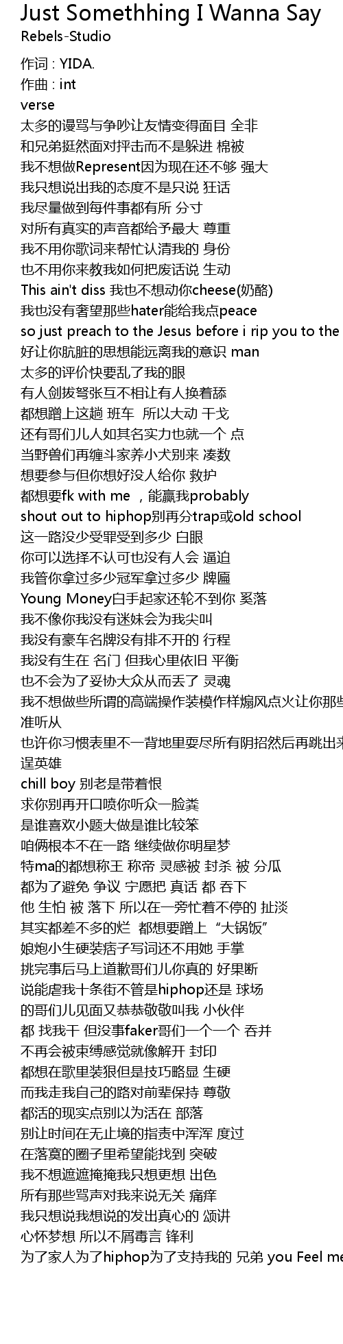 | wei le jia ren wei le hiphop wei le zhi chi wo de xiong di you Feel me |
