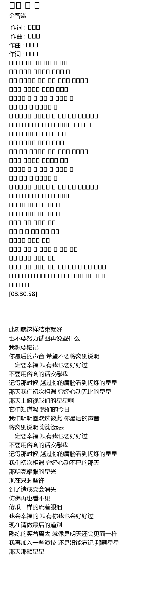 [02:58.54] 행복할 거야 너 없이도 잘 지낼 거야