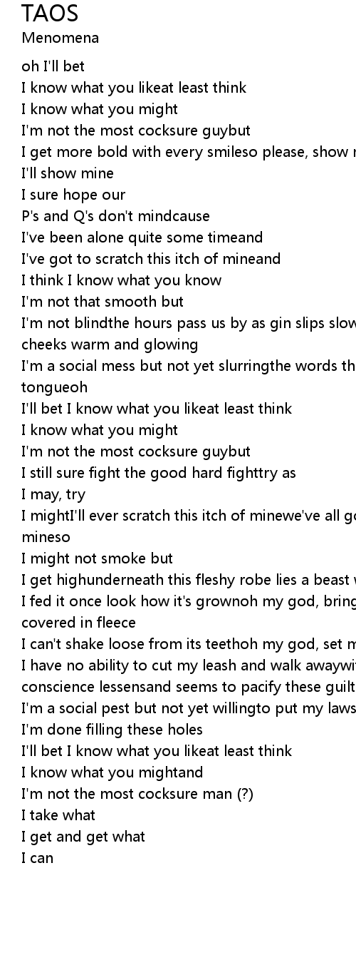 | I mightI'll ever scratch this itch of minewe've all got our vices, this one's mineso | |