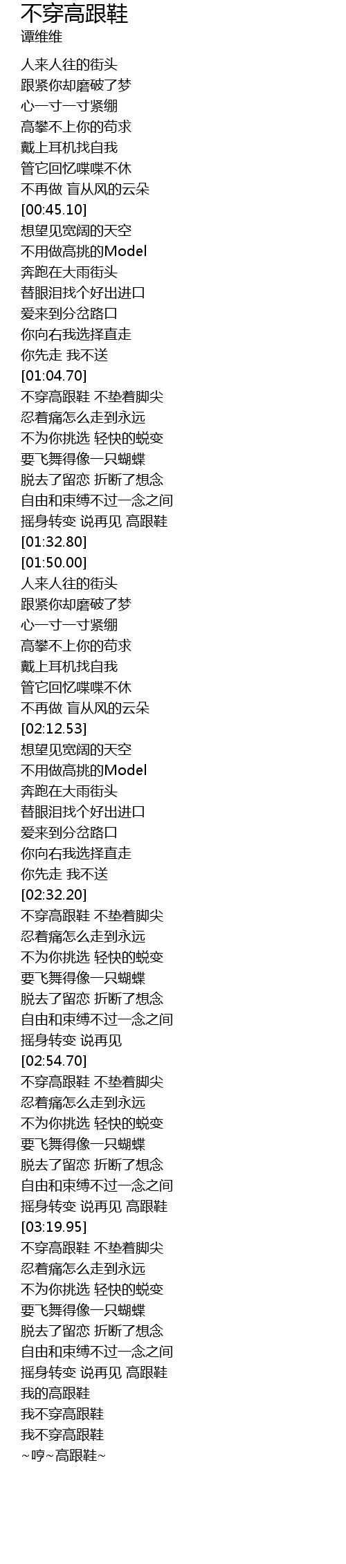 | [03:54.70] | wǒ bù chuān gāo gēn xié |
