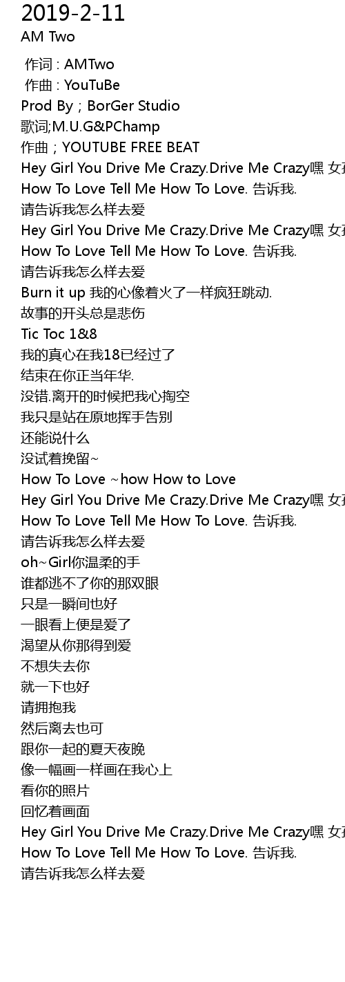 | [00:11.586] | 歌词;M.U.G&PChamp |