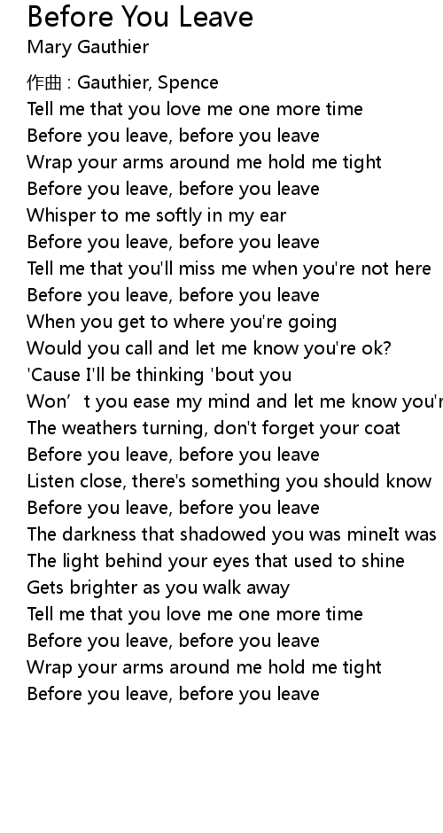 | Before you leave, before you leave | |