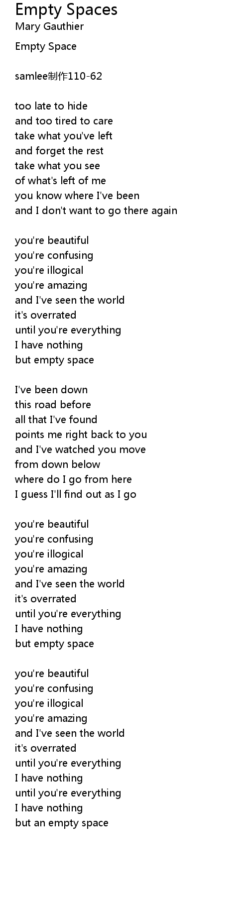 | Song | Empty Spaces |